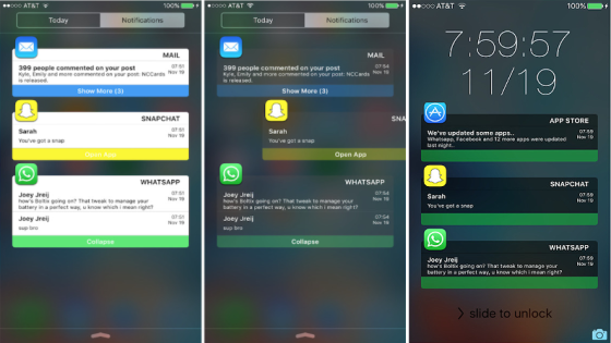 NotificationCards متوفرة على المتجر سيديا بقيمة 2.99 $. لبدء تخصيص نظامك iOS ، انقر هنا للحصول على تعليمات حول كيفية الجيربريك نظامك الـ iOS 9 مع Pangu .
